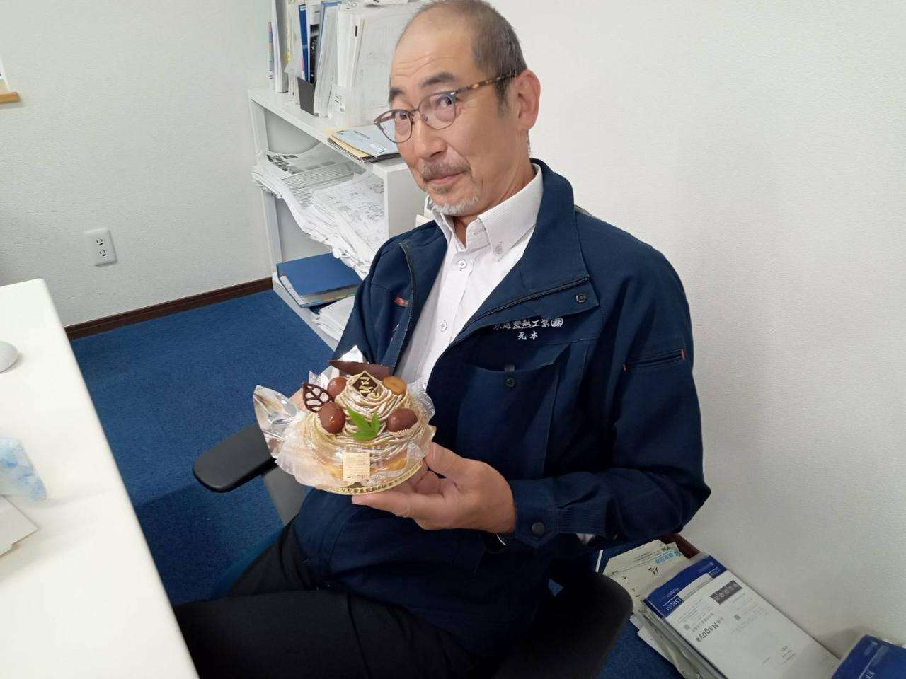 回目のお誕生日でした。専務がケーキを買ってきて事務所でお祝いしました。まだ、東海整熱が小規模(今も?)